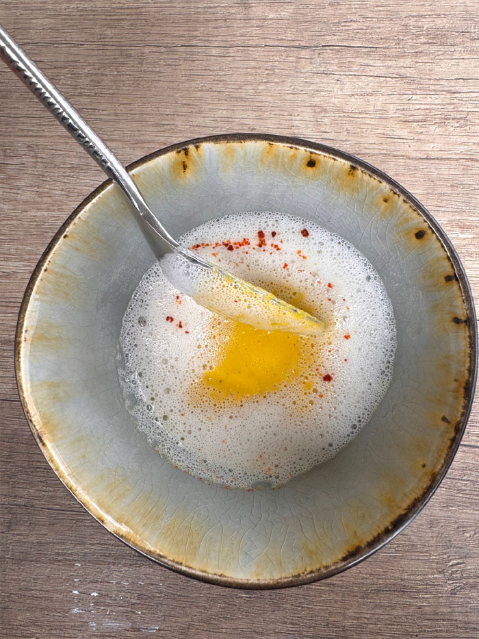 Truite confite de la maison Murgat, asperges juste snackées, siphon beurre noisette